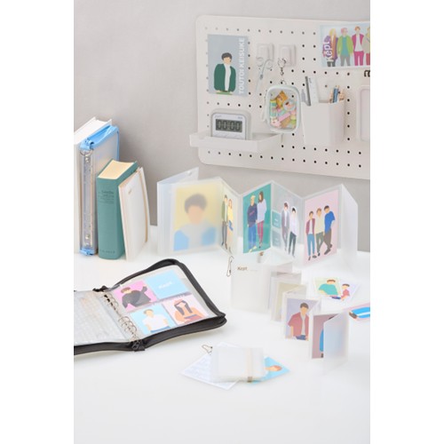 Keptの収納ファイルです。推し活アイテムやシール、トレカ等幅広く収納可能です。ライブグッズなどもカラーに合わせて収納できるのでメンバーカラーごとの収納がオススメです。