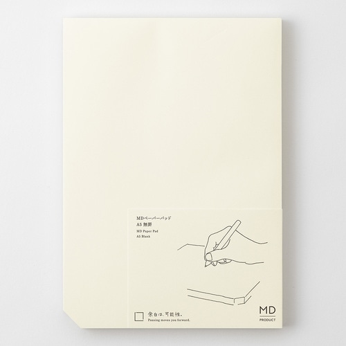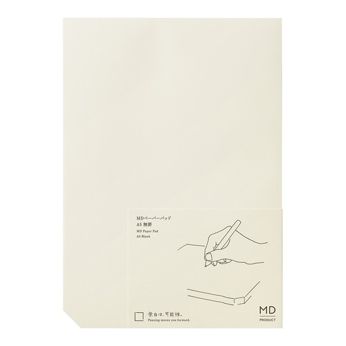 2辺を糊で留めているので安定感があり縦でも横でも書きやすい。めくりやすいように角をカット。自由な使い方を楽しめる「無罫」。