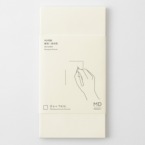 目に優しく、黒やブルーブラックのインクが映えるクリーム色の「MD用紙」を使用した封筒です。 「MD用紙」はにじみや裏抜けがしにくく、書き味の良さを追求し続けているオリジナルの筆記用紙です。 二重構造で、折れにくく透けにくい仕立てです。 糊テープ付きで手軽に封ができます。 8枚入り。 二重封筒。 郵便番号枠なし。