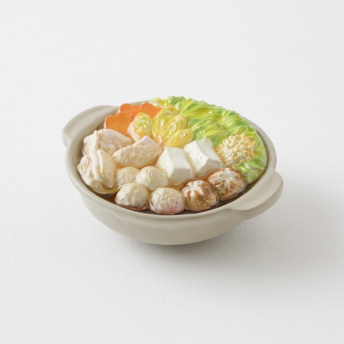 日本の料理や飲み物をミニチュアサイズで再現した強力なマグネットです。 複雑な形状も表現できるレジンを使った成型に、再現性の高いインクジェット印刷、さらに細かな部分には手塗りを用い、各モチーフの形状や色、ツヤなど細部にまでこだわっています。いずれの柄も、食欲をそそるしずる感のある見た目に仕上げました。 強力で滑り止めが付いており、コピー用紙5枚をしっかり止められます。また、厚い紙もしっかり固定できる強力なネオジム 磁石を使用しています。 パッケージは、絵画を飾る額縁をイメージして、一つひとつのアイテムが美しく見えることを意識して作りました。 外国人観光客へのお土産やギフトにもおすすめです。 【警告】 ●この製品はおもちゃではありません。 ●6才未満のお子さまには絶対に与えないでください。また、手の届かない所に保管してください。誤飲した場合はすぐに医師の診断を受けてください。 【ご使用にあたって】 ○磁石内蔵のため、携帯電話、磁気カード、医療機器、精密機器等に近づけないでください。 ○高所から落とすなど、強い衝撃を与えると破損す恐れがあります。 商品名:ミドリ マグネット マグネット 1個入 寄せ鍋柄 43436006