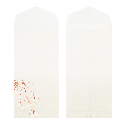 1000年もの時を重ねてきた伝統素材の和紙を用いて、四季折々の花々を大胆な構図でデザインした季節の便りです。 少ない文字数でも美しく完成される紙面デザインは「紙シリーズ」ならでは。 「冬の実柄」は、降る雪の中、美しく色づいた実4種(ナンテンギリ、ネズミモチ、センダン、アオツヅラフジ)をアソート。 やさしい肌合いの越前和紙「越前鳥の子」(白)を使用しています。 封筒は4柄各2枚の8枚入りです。 商品券やギフト券も入るサイズです。 お礼状や贈り物の添え状など、さまざまなお付き合いのシーンでご活用ください。 商品名:ミドリ 封筒 冬レター 4柄入 冬の実柄 81001006【検索ハッシュタグ】#デザインフィル#designphil#midori#かわいい#可愛い#おしゃれ#オシャレ#おすすめ#シンプル#大人#紙シリーズ#和紙#冬#ウィンター#無罫#植物#花#レター#手紙#お祝い#上品#季節#芸術#アート#木の実
