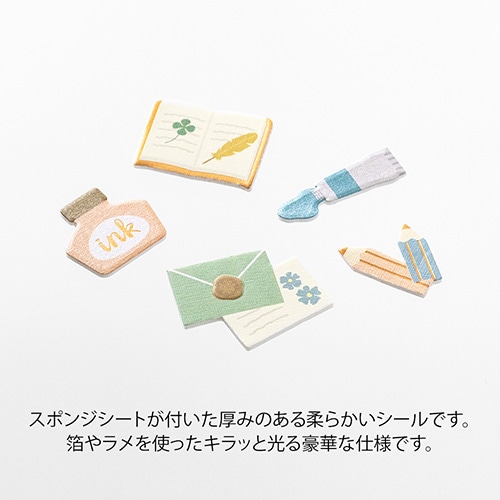 カードや色紙、ラッピングのデコレーションに使えるフレークタイプのシール。銅箔をあしらったアンティークな文房具柄は、卒業の色紙やアルバムにもぴったりです。スポンジシートが付いた厚みのある柔らかいシールを貼っていくと、箔やラメの輝きで華やかな印象になります。PCMタイトルシールやラベルシールと組み合わせてお使いいただけます。5柄30枚入り。【検索ハッシュタグ】#シール2576PCMデコレーション文房具