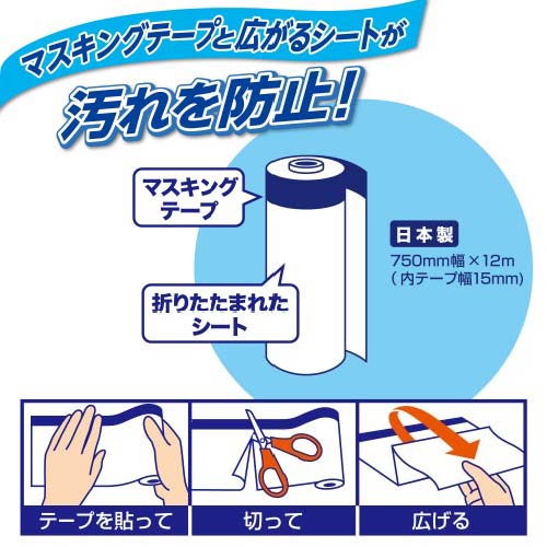 マスキングテープと広がるシートが汚れを防止!