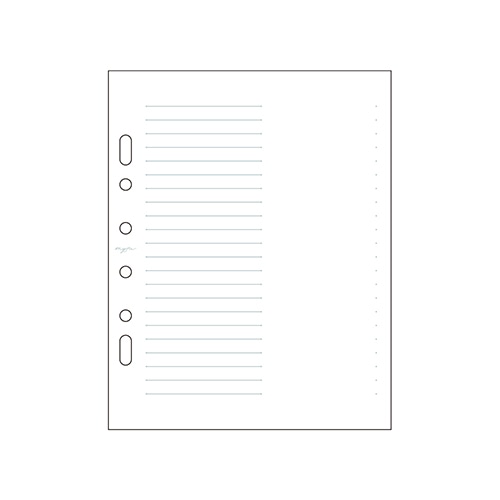 2穴・ミニ6穴に対応した厚口上質紙で書きやすいライフログリフィルです。セットリストや箇条書きに適したハーフサイズの罫線リフィルです。罫線レススペースにはシールや写真を貼ってもすっきり見えます。リフィル右端にあるドットとハーフ罫線を繋げば罫線を延長することができます。別売りの罫線ペン【PN-100】で罫線を書き足してアレンジすることができます。【検索ハッシュタグ】#ライフログ#リフィル#リヒトラブ#推し活#ミニ6穴