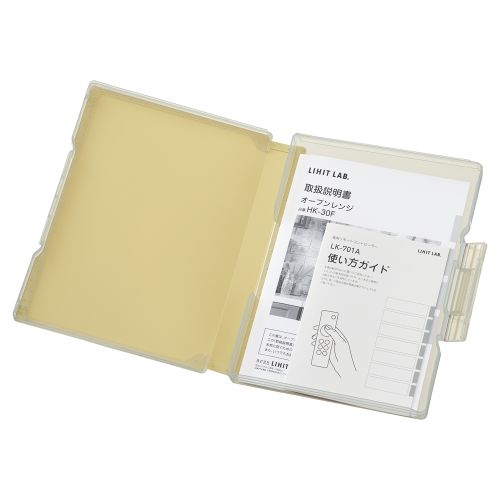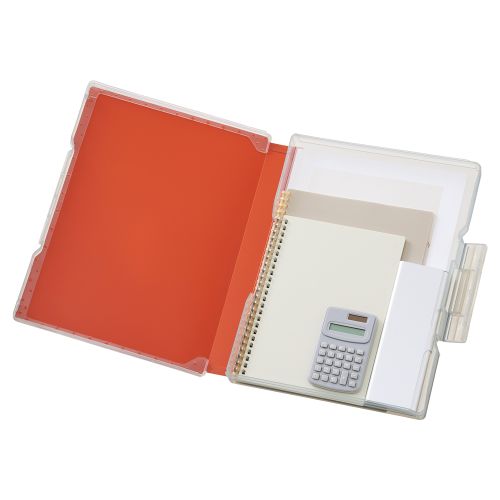 180°フルオープンでA4書類や小物をまとめて収納できる。