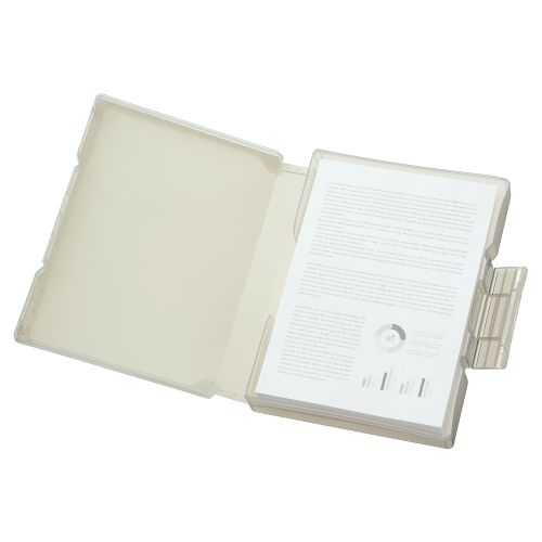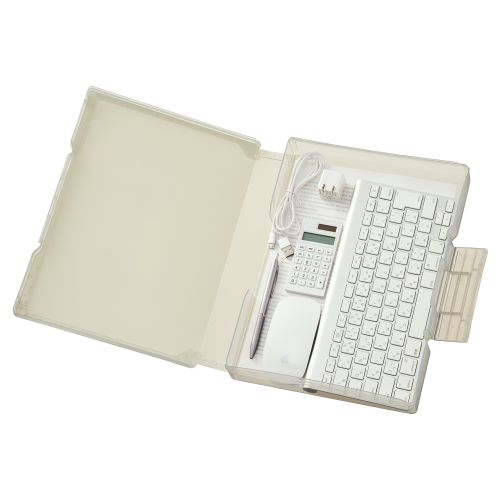180°フルオープンでA4書類や小物をまとめて収納できる。