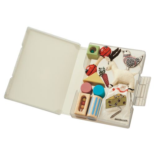 フタが180°フルオープンで開くので、収納物の出し入れがしやすいです。取扱説明書などの冊子をまとめて収納したり、小さなおもちゃや小物を整理して収納するのにおすすめです。本体は適度な厚みがあるので、棚に立てて収納することもできます。