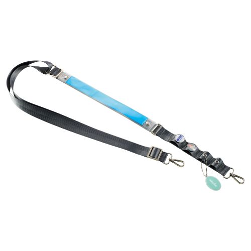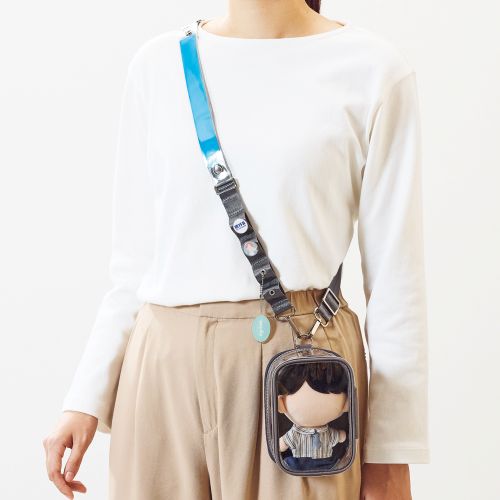銀テープやピンバッジを付けてオリジナルのショルダーベルトが作れる。