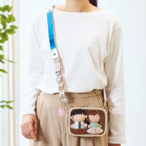 銀テープケース付きで、銀テープやピンバッジ、キーホルダーを付けてオリジナルのショルダーベルトが作れます。別売りのデコレーションボックスポーチ、デコレーションボックスポーチワイド(A-3305~A3310)に付けて使用することができます。付属の銀テープケースには幅25×長さ210mmまでの銀テープが収納できます。幅25×長さ210mm以上の銀テープは、折るかカットして収納してください。