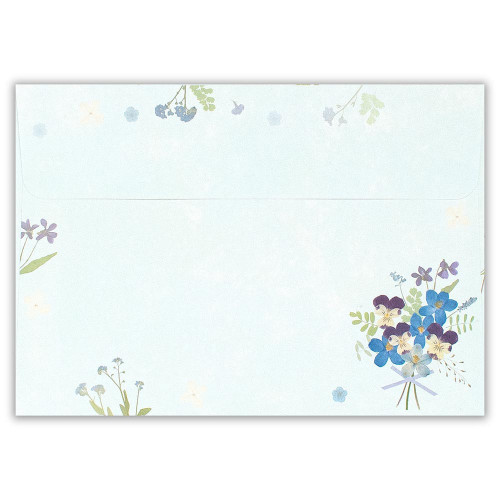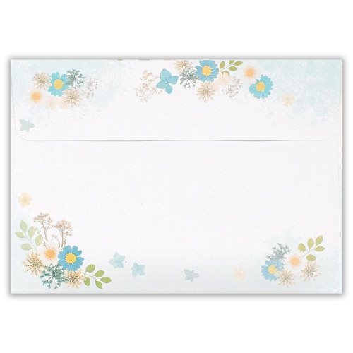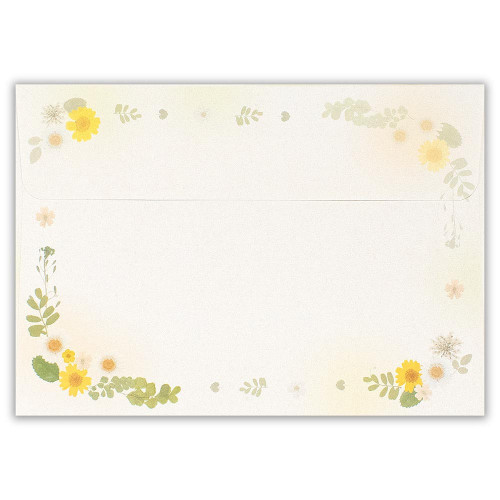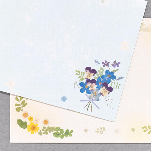 4柄のデザインが楽しめる、ボリュームタイプの便箋・封筒です。 通年お使いいただける花柄で、押し花の絵柄がお手紙を彩ります。