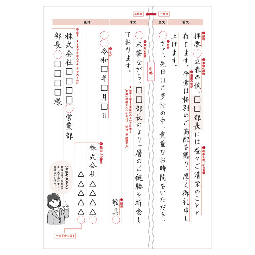 手紙文化振興協会 代表理事 むらかみかずこ監修 ビジネスの現場で役立つ、手紙の書き方と文例付の便箋。 封筒は宛名の書き方付です。