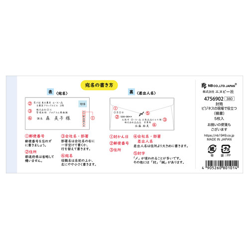 手紙文化振興協会 代表理事 むらかみかずこ監修 ビジネスの現場で役立つ、横書のお手紙に適した洋封筒です。 使用イメージと書き方のアドバイスが掲載されています。 監修者紹介 一般社団法人手紙文化振興協会 代表理事 むらかみかずこ 幼少の頃からの手紙好きが高じて、手紙名人と呼ばれるようになる。 「手書きのひと言でお客様がファンになる」企業研修実績多数。NHK Eテレ「まる得マガジン」一筆箋講師、毎日放送「プレバト!」一筆箋講師他、メディア実績多数。著書・監修書多数。