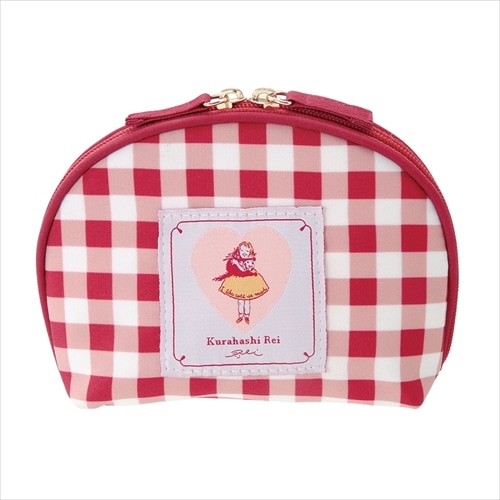 くらはしれいさんのアートを描いた織ネームワッペンが目を引く、ギンガムチェックのシェル型ミニポーチ。ころんとしたフォルムに、大き目の織ネームがアクセントとして映えるキュートなデザインです。内側にはポケットとゴムバンド付きで、リップや目薬などの小物をすっきり収納できます!お化粧直しのおともに、バッグの中で活躍してくれるアイテムです。