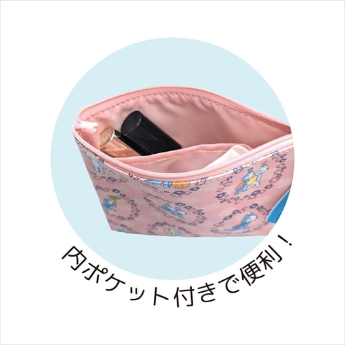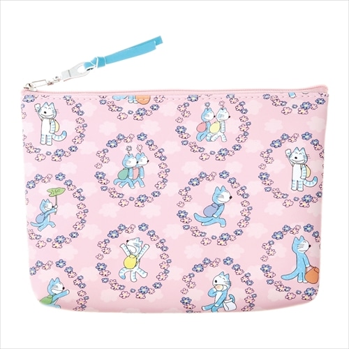 「11ぴきのねことふくろのなか」に登場する、花々に囲まれたねこたちのイラストをもとにオリジナルでデザインしたポーチです。ちょっとした小物を入れるのに便利なサイズで、毎日の持ち歩きにも活躍します。こだわりのリボン引手がアクセントになっており、内側には小物整理に便利なポケット付きです。