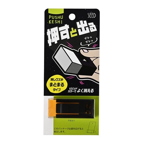 ケースを押すと消しゴムが出てくる「プシュケシ」に、消しゴムとケースが一体となったワンパッケージ商品が登場!