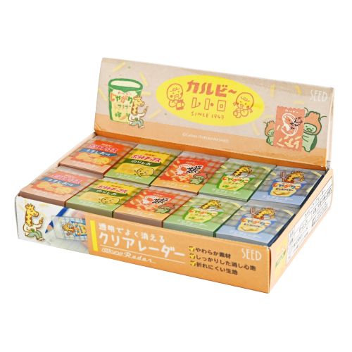 ”透明な消しゴム”「クリアレーダー」からカルビーのお菓子パッケージ柄シリーズが新登場。あなたの一押しカルビーはどれかな。