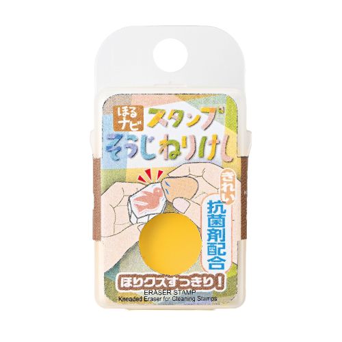 インク汚れと彫りくずを掃除できるスタンプそうじねりけしが抗菌剤入り新生地で登場! 保管に便利なハードケース入り。 欠けた所の修正やドットスタンプとしても使えます。