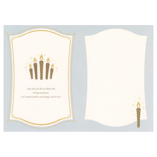 ヴィンテージワインのラベルのようなデザインに仕上げた、大人の方にお勧めのバースデーカードです エンボス加工と金箔押し加工が上品に彩ります 誕生日のキャンドルをスマートに描きました (洋形2号封筒) カード:エンボス加工、金箔押し加工 絵柄付中紙入