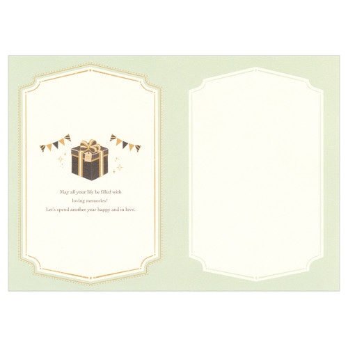 ヴィンテージワインのラベルのようなデザインに仕上げた、大人の方にお勧めのバースデーカードです エンボス加工と金箔押し加工が上品に彩ります プレゼントボックスをスマートに描きました (洋形2号封筒) カード:エンボス加工、金箔押し加工 絵柄付中紙入