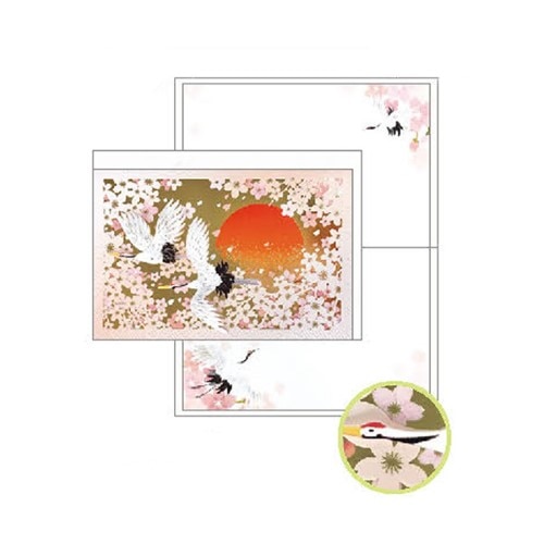 繊細なレーザーカットに鶴のモチーフが着いた和風多目的グリーティングカード゙。本体・中紙・封筒 各1枚/エンボス・箔加工あり/中紙に印刷あり【検索ハッシュタグ】#レーザーカット#多目的#和風#グリーティングカード#クローズピン