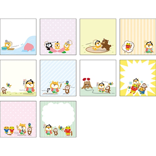 昔話の登場人物になりきったアニマルの可愛いメモ帳です。10種の絵柄が各5枚ずつ入っています。