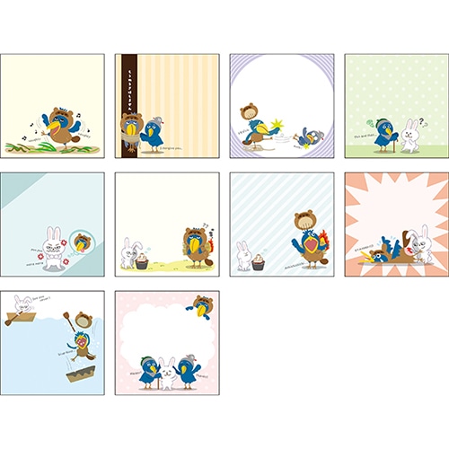 昔話の登場人物になりきったアニマルの可愛いメモ帳です。10種の絵柄が各5枚ずつ入っています。