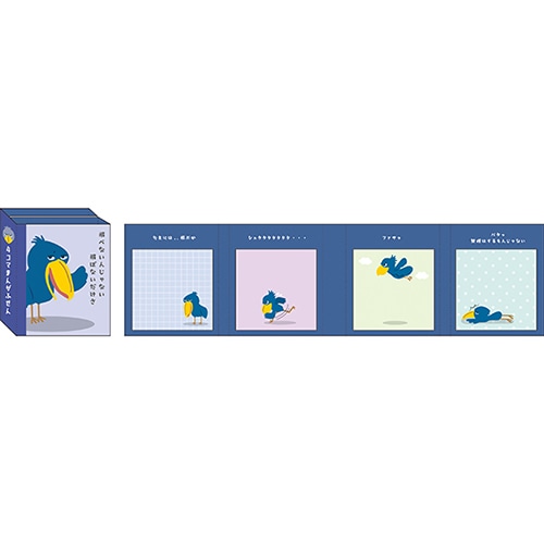 ブック型のふせんです。4柄×各20枚入りでたっぷり使えます。4コマまんが風の、ストーリー仕立てのデザインになっています。折りたたむとコンパクトになるので収納もしやすいです。