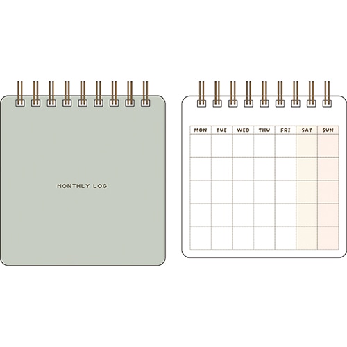 手帳代わりに使える、手のひらサイズのライフログノートです。一カ月の予定を書き込んだり、ダイエットなどのトラッカーノートとしても使えます。マンスリー40枚とフリーのドット方眼ページが20枚ついています。