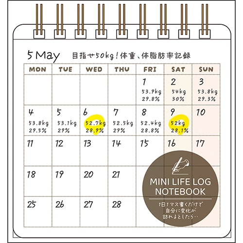 手帳代わりに使える、手のひらサイズのライフログノートです。一カ月の予定を書き込んだり、ダイエットなどのトラッカーノートとしても使えます。