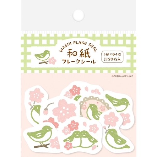 #古川紙工 シール 和紙フレークシール  サクラとウグイス QSA353 #古川紙工 シール 和紙フレークシール サクラとウグイス QSA353