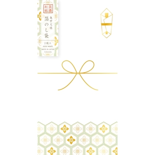 美濃和紙を使用した箔押しのし袋。七宝・亀甲・麻の葉・青海波など、日本の伝統文様を上品にあしらいました。金箔の輝きと和紙の風合いが調和し、より格調高く演出します。【検索ハッシュタグ】#古川紙工#紙福のひととき#美濃和紙#のし袋#亀甲文様