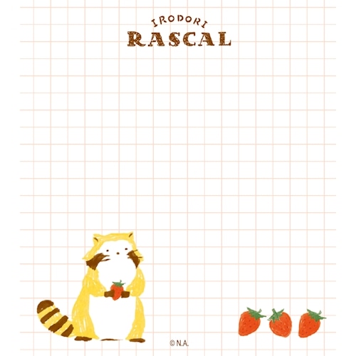 アニメーション「あらいぐまラスカル」のラスカルといろどりをテーマに、さわやかなデザインで新登場。たっぷり100枚綴りのメモパッドです。25枚×4柄も入っているので気軽に使えるのも嬉しいポイント!