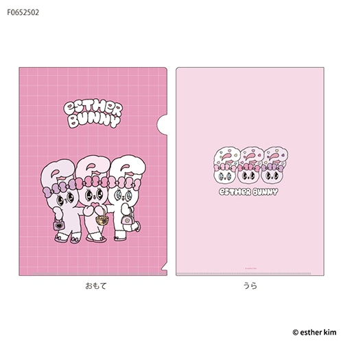 『エスターバニー』の、イメージカラーのピンクをベースにしたクリアファイルです。書類やプリントをしまうのに適したA4サイズです。