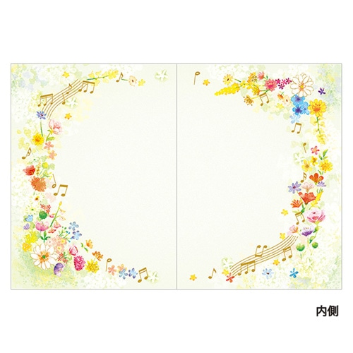 人気の高い音符と花をモチーフとした彩り豊かなデザインです。ふんわりとした優しいタッチのデザインは誕生日に限らず、お礼、お祝い、ちょっとした気持ちの伝達など 幅広くお使いいただけます。フラワーギフトや贈り物にも添えやすいカードです。内側絵柄入り。【検索ハッシュタグ】#チキュウ#多目的#音符#音楽