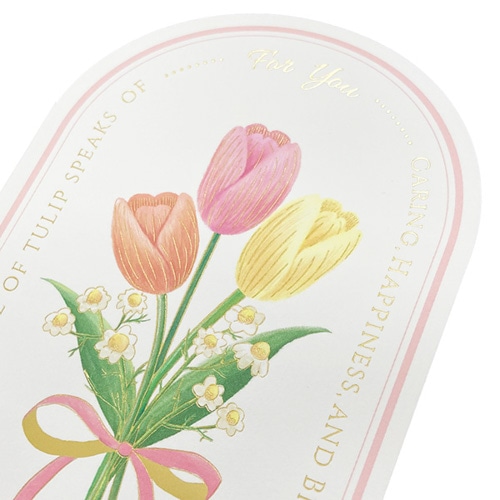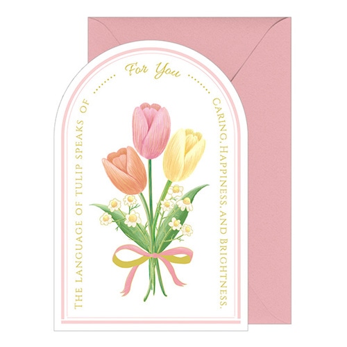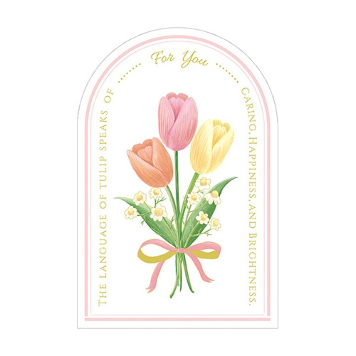 窓型のシンプルなデザインに、チューリップを描いた、やさしい雰囲気の花言葉をモチーフにしたカードです。