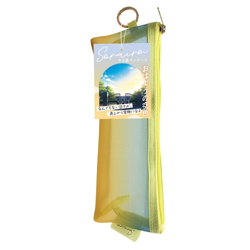 メッシュ素材で軽く、収納しやすいグラデーションカラーのペンケース。シャープペン・消しゴム・ハサミ・のり・17cm定規まで収納可能。メッシュ素材の軽いペンケース【検索ハッシュタグ】#新商品#そら色#ペンケース#メッシュ素材#軽い#学用品