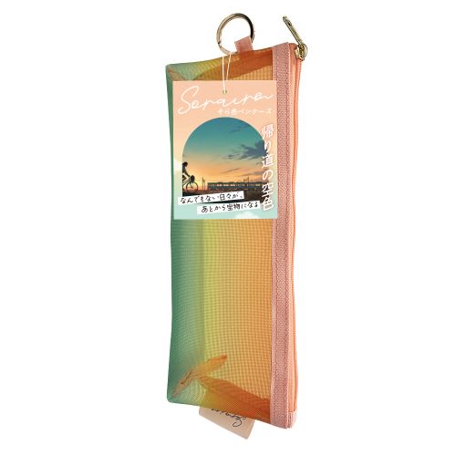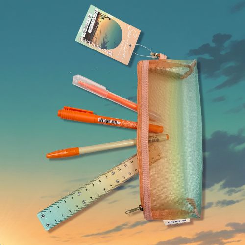 メッシュ素材で軽く、収納しやすいグラデーションカラーのペンケース。シャープペン・消しゴム・ハサミ・のり・17cm定規まで収納可能。メッシュ素材の軽いペンケース【検索ハッシュタグ】#新商品#そら色#ペンケース#メッシュ素材#軽い#学用品
