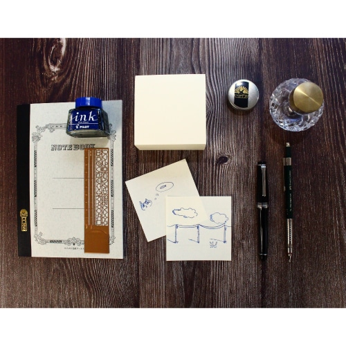 ツバメノートのブロックメモです。天糊メモなので一枚ずつはがしながら使うことができます。85㎜×85㎜のコンパクトなサイズで、デスクや電話の横などのちょっとしたスペースに置いたり、手帳やノートと併用するのに使いやすいサイズ感で厚みは約43㎜です。本文には目に優しくなめらかな書き心地のツバメ中性紙クリームフールスを使用しています。本文枚数は400枚で、200枚ごとに仕切りのボール紙(厚紙)が入っているので耐久性もあり、使用枚数の目安にもなります。用途に合わせて半分に切り分けて200枚のブロックメモ2冊として使うこともできます。本文内容は無地で、罫線を気にせず、自由にメモをとることができます。イラストを添えたり、図やレイアウトを考える際にもお使いいただけます。罫線にとらわれず、「線がない方が良い」という方にオススメです。無地・無罫/400枚
