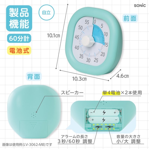 #ソニック タイマー トキ・サポ 時っ感タイマー 10cm 色で時間の経過を実感 ミントブルー LV-3062-MB