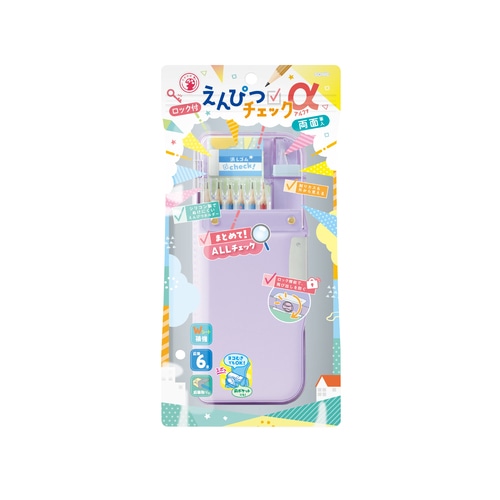 鉛筆、消しゴム、削り器、名前ペンもまとめてチェック!えんぴつチェックα両面筆入 フタを開けずに鉛筆の先端が見えるチェック窓がパワーアップ!