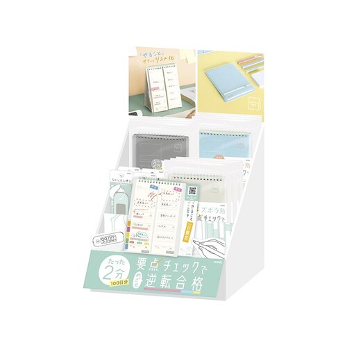 店頭販促にオススメな置き型什器! 1日たった2分!要点チェックするだけの勉強リストでめざせ逆転合格 スタンドさせておけば、書いた「やること」常に確認できる やること・ニガテが一目瞭然に!