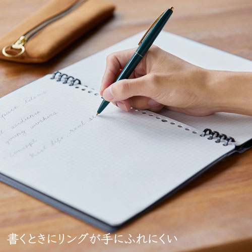 書くときにリングが手にふれにくいリングノート テフレーヌがレザフェスUシリーズに新登場。光沢を抑えた落ち着きのある色味と上質な質感でちょっとした贅沢やギフトにもぴったりの商品です。【検索ハッシュタグ】#れざふぇす・レザフェス・てふれーぬ・テフレーヌ・TEFURENU・tefurenu・文具・文房具・収納・在宅勤務・在宅ワーク・コンパクト・スペース・勉強・受験・大学・キャンパス・リングノート・セパレートリング・360度折り返し・学校・仕事・勉強・ビジネス・メモ・A5・軽量・持ち運び・耐久性・書き心地・便利・スケジュール管理・アイデアメモ・日記・旅行記 差し替え・入れ替え・交換用リーフ・追加リーフ