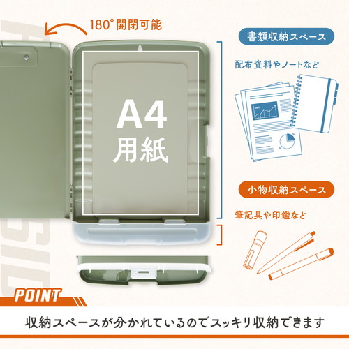 「はさむ」と「しまう」をこれ一つで。収納付きクリップボード。