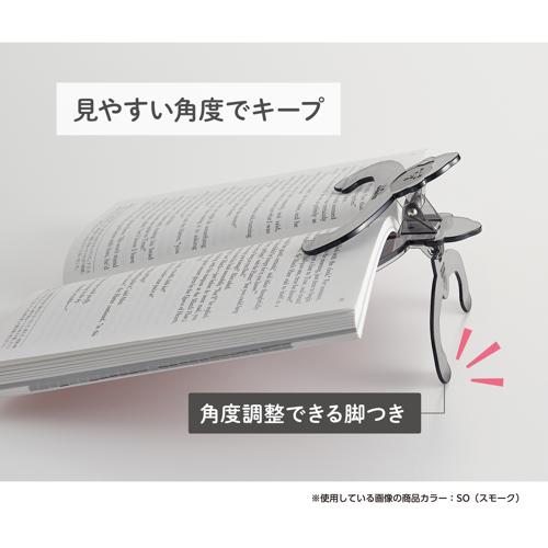 ●角度調整できる脚付きなので、本を見やすい角度でキープ!脚をたためば普通のクリップとしても使えます。 ●ページをしっかり固定するので本を開いたまま作業ができます。 ●軽い力で開閉でき、お子さまやご高齢の方など、手の力が弱い方にも使いやすい設計です。 ●文字が透けて見えるクリアカラータイプ。クリップでとじた部分も文字が隠れません。 ●本体材質のポリカーボネート(PC)は、「優れた透明性」と「高強度・耐衝撃性」を併せ持つ素材です。