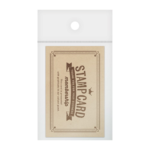 リピーター獲得に最適なスタンプカードです。飲食店やサロン、各種店舗で使いやすいデザインで、販促ツールとして幅広く活用できます。クラフトの厚手用紙で扱いやすく、集客力アップに貢献します。スタンプスペース20マス。