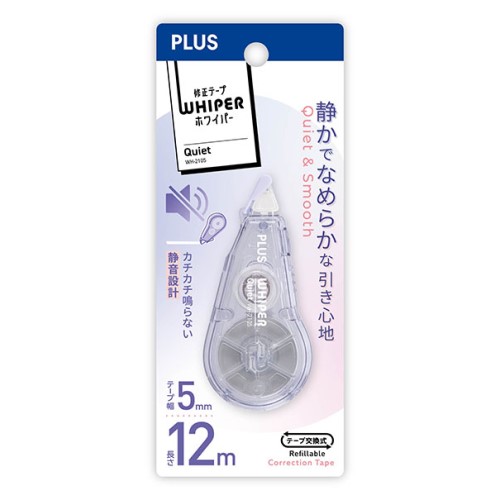 ・「静音ギア」搭載の独自の静音設計で、静かでなめらかな引き心地・コンパクトなのに12m巻きの大容量。テープ交換式で本体を長く使える ・直進性に優れ、重ね引きに強い「ミニローラーヘッド」でより快適に・ペン先で削れにくく、さらさらときれいに上書きできる「薄さらテープ」 ・「リバースモード」で、消したい文字を見ながらピンポイントに修正可能・なくす心配がなく、ワンタッチで開閉できる「本体一体型キャップ」【検索ハッシュタグ】#修正テープ#PLUS#プラス#新商品
