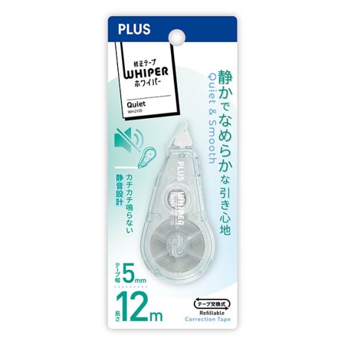 ・「静音ギア」搭載の独自の静音設計で、静かでなめらかな引き心地・コンパクトなのに12m巻きの大容量。テープ交換式で本体を長く使える ・直進性に優れ、重ね引きに強い「ミニローラーヘッド」でより快適に・ペン先で削れにくく、さらさらときれいに上書きできる「薄さらテープ」 ・「リバースモード」で、消したい文字を見ながらピンポイントに修正可能・なくす心配がなく、ワンタッチで開閉できる「本体一体型キャップ」【検索ハッシュタグ】#修正テープ#PLUS#プラス#新商品