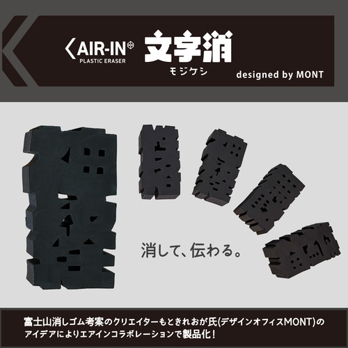 ●富士山消しゴム考案のクリエイター(デザインオフィスMONT)のアイデアよりエアインコラボレーションで製品化!●文字そのものの形をしながら、 使用感も追及しデフォルメデザイン●慣用句や比喩表現 だけじゃない。込められた想いがギフト需要にも●エアインクオリティ!軽い消し心地! 多孔質セラミックパウダー配合のエアイン樹脂を採用【検索ハッシュタグ】#消しゴム#エアイン#プラス#PLUS#新商品