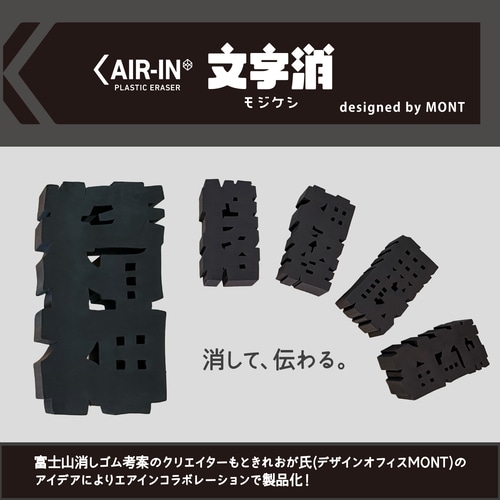 ●富士山消しゴム考案のクリエイター(デザインオフィスMONT)のアイデアよりエアインコラボレーションで製品化!●文字そのものの形をしながら、 使用感も追及しデフォルメデザイン●慣用句や比喩表現 だけじゃない。込められた想いがギフト需要にも●エアインクオリティ!軽い消し心地! 多孔質セラミックパウダー配合のエアイン樹脂を採用【検索ハッシュタグ】#消しゴム#エアイン#プラス#PLUS#新商品