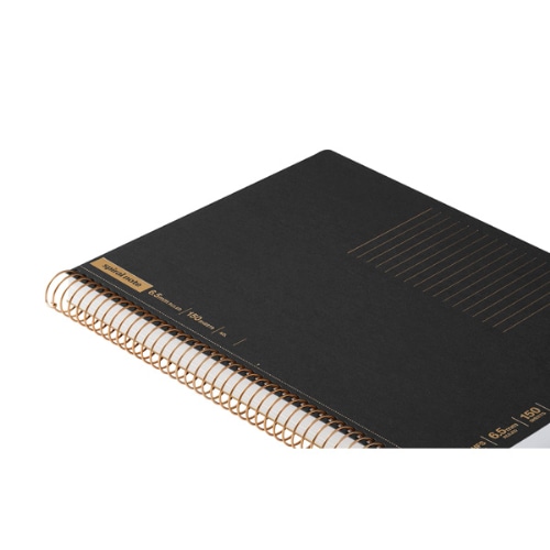 機能的で使いやすいノート「スパイラルノートベーシック」。 たっぷり書ける150枚入りに、ビジネスシーンでもなじみやすい「ブラック」「グレー」の2色が登場しました! ●POINT①:シーンを問わずに使いやすい表紙デザイン    ・ベーシックでどんなシーンでもなじみやすい表紙カラー    ・特別感のある表紙の箔押しデザイン ●POINT②:たっぷり書ける多枚数    ・気兼ねなくたくさん書ける150枚入り ●POINT③:書きやすい、使いやすい本文用紙   ・書き味の良いオリジナル筆記用紙   ・切り取りやすいミシン目入り   ・大きな文字も小さな文字も書きやすい6.5mm横罫【検索ハッシュタグ】#ノート#マルマン#大容量#B5ノート